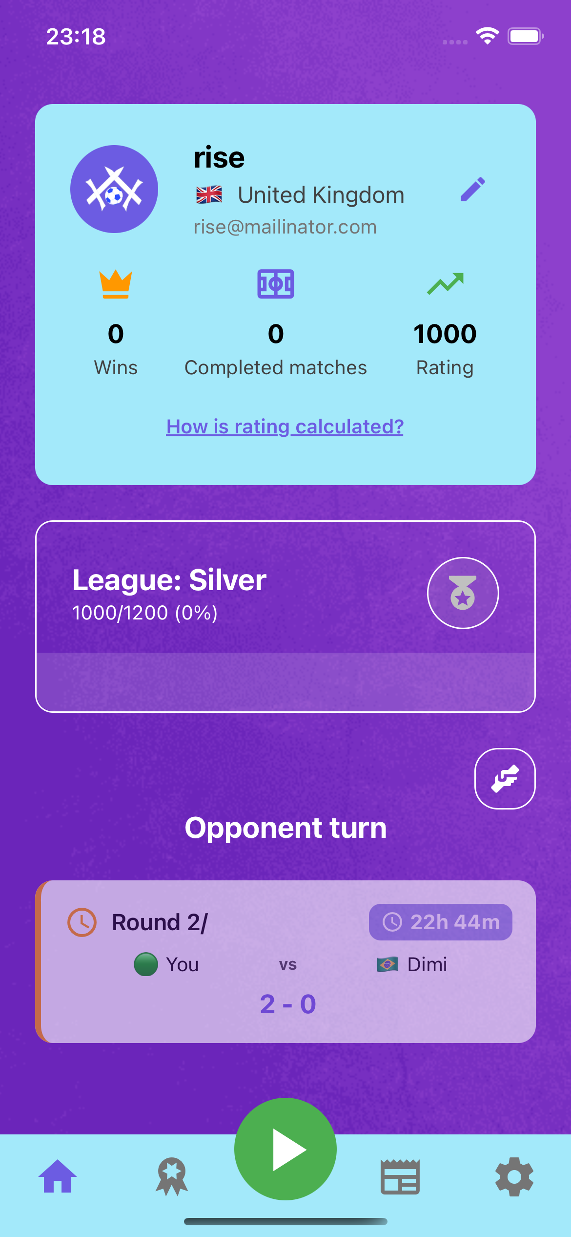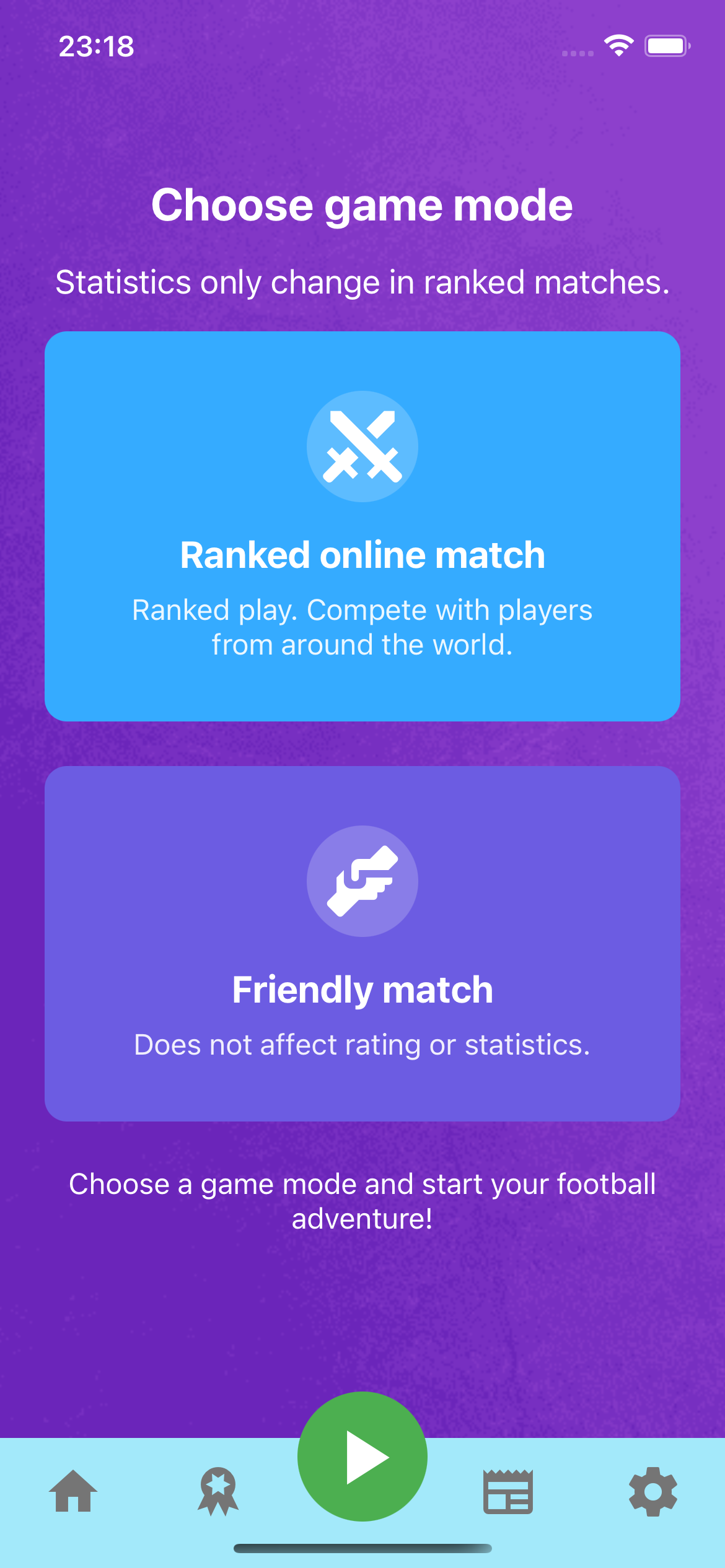 Hit Play and get matched with an opponent, or challenge a friend directly.